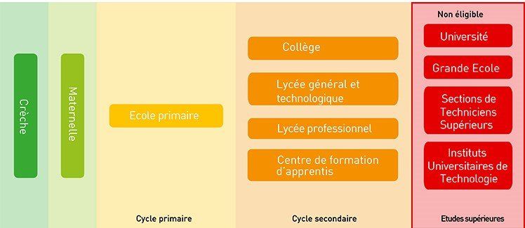 Cela inclut les crèches, écoles maternelles et élémentaires, les collèges, lycées et CFA.